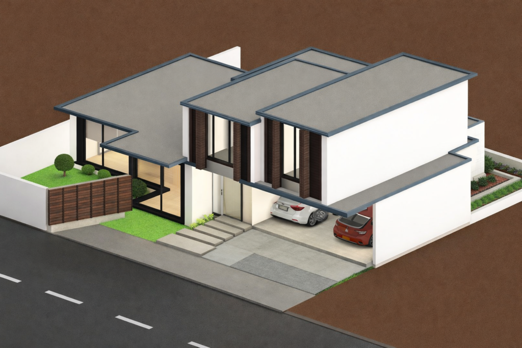 Our responsibilities included developing detailed 2D floor plans, creating a 3D architectural model up to LOD 300, designing the swimming pool and sitting areas, and developing landscape elements to enhance the overall visual appeal and functionality of the residence.